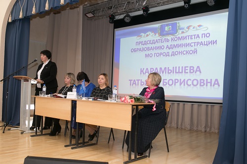 На конференции выступили Глава МО город Донской Александрова Елена Вячеславовна и председатель комитета по образованию администрации МО город Донской Карамышева Т.Б. Директор МБОУ ДО "Детский (подростковый) центр "Факел" Березина Надежда Васильевна была награждена медалью Центрального Совета Профсоюза "100 лет дополнительному образованию детей".