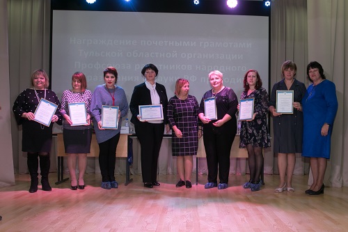 ![]() Грамотами обкома и горкома профсоюза были награждены активисты первичных профсоюзных организаций. Сертификатами городской организации Профсоюза награждены первичные профсоюзные организации, имеющие высокое профсоюзное членство. По итогам выборов председателем городской организации Профсоюза была избрана Алешина Ольга Анатольевна.